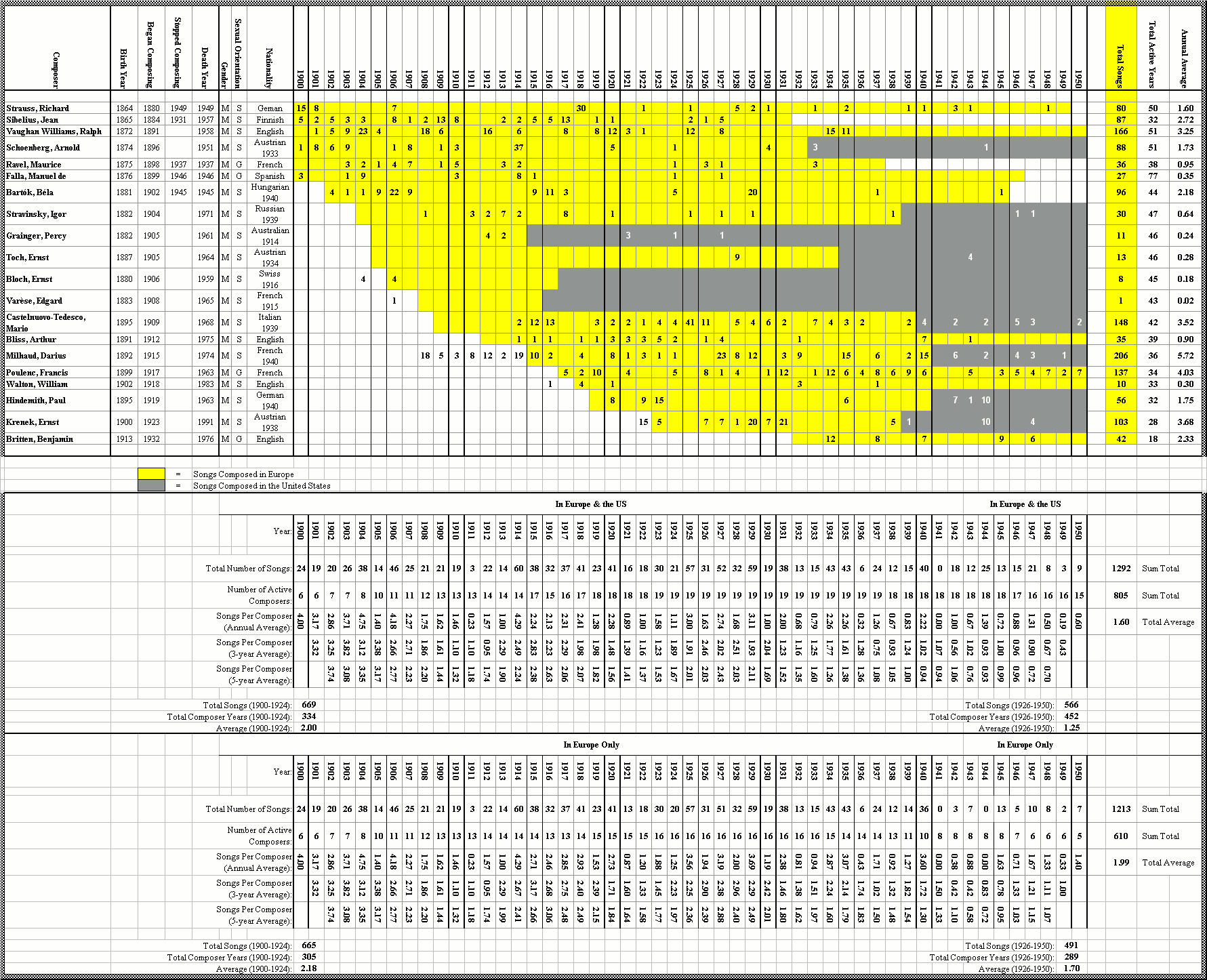 Appendix D Table: All European Songs